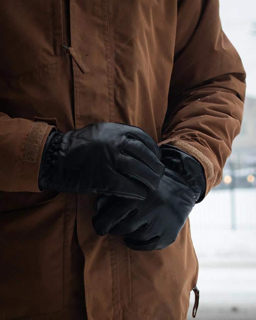 The gloves are unisex and come in black or tan. Sizes range from small to X-large. A ruched cuff allows you to easily take them on or off.