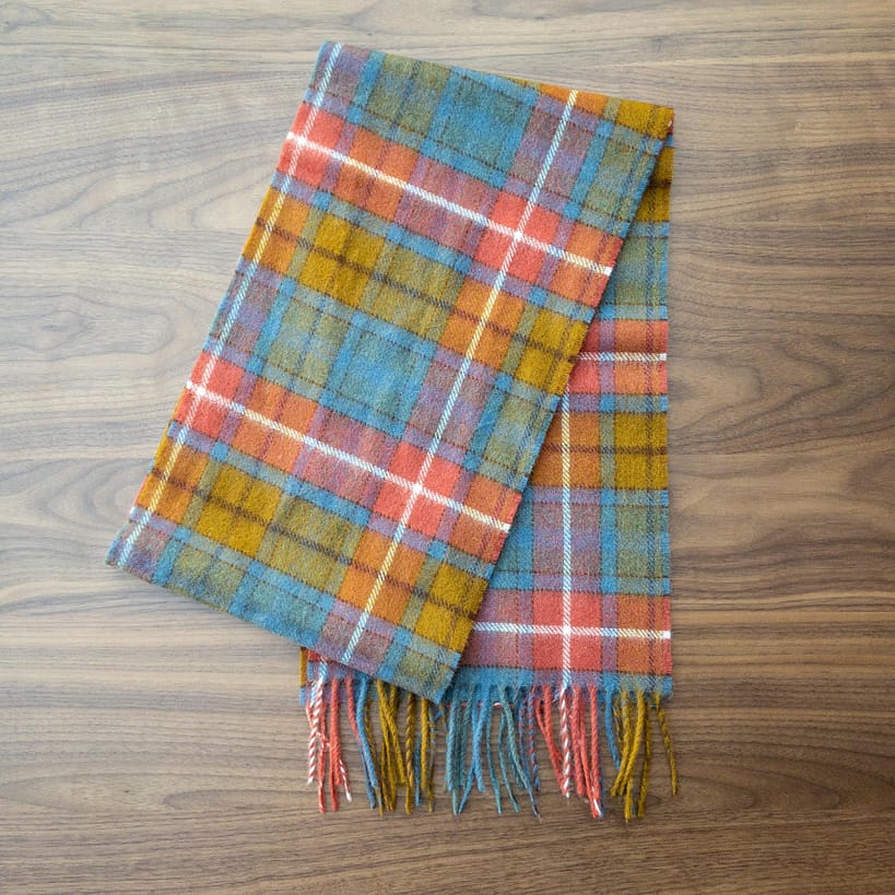 Ancient Buchanan Tartan Scarf is made from 100% Merino Lambswool. A magnificent tartan depicting the many colors of the Buchanan Clan. Manufactured by the historic Moon mill in Guiseley, Yorkshire.