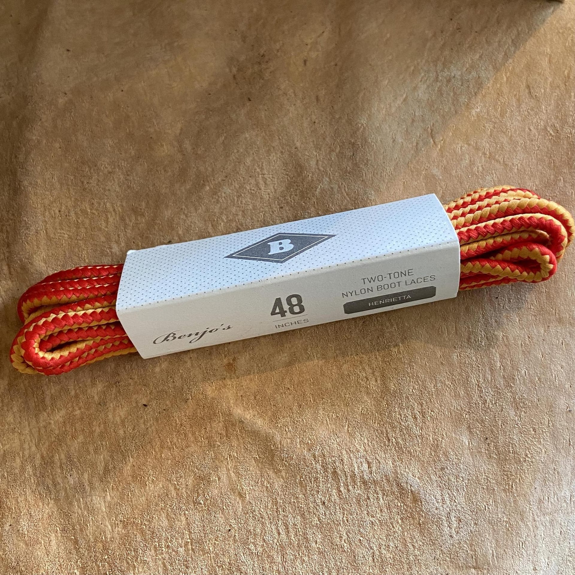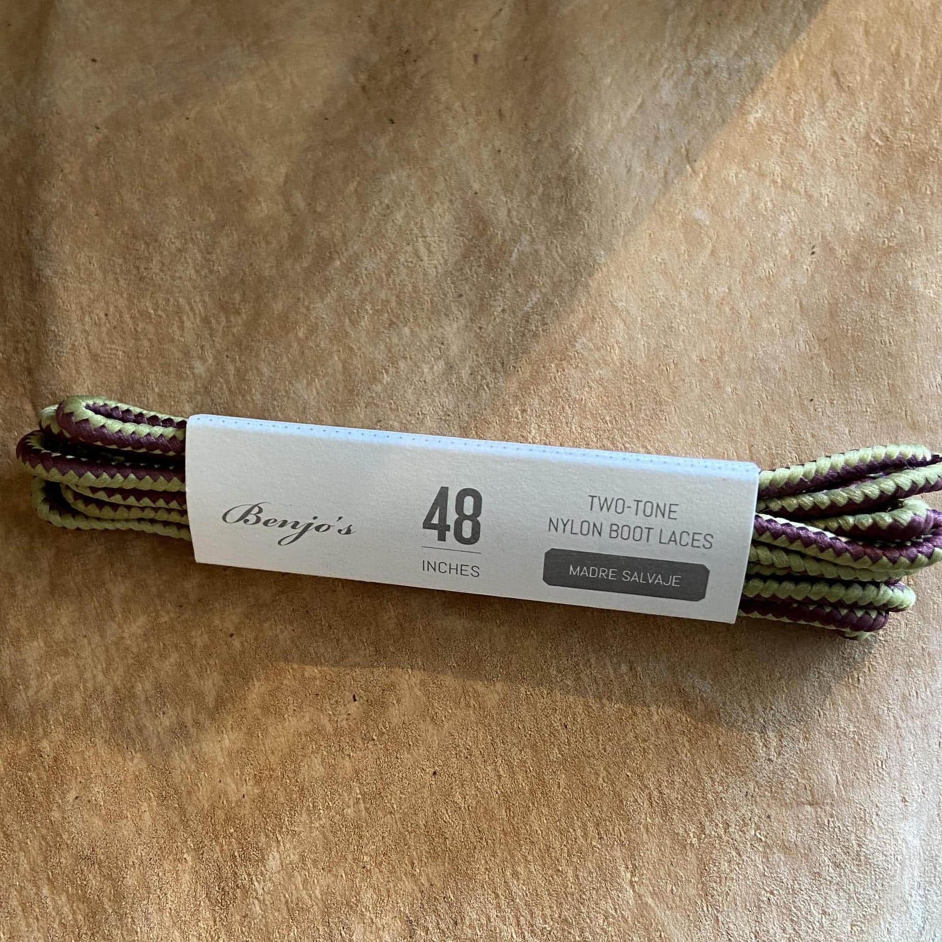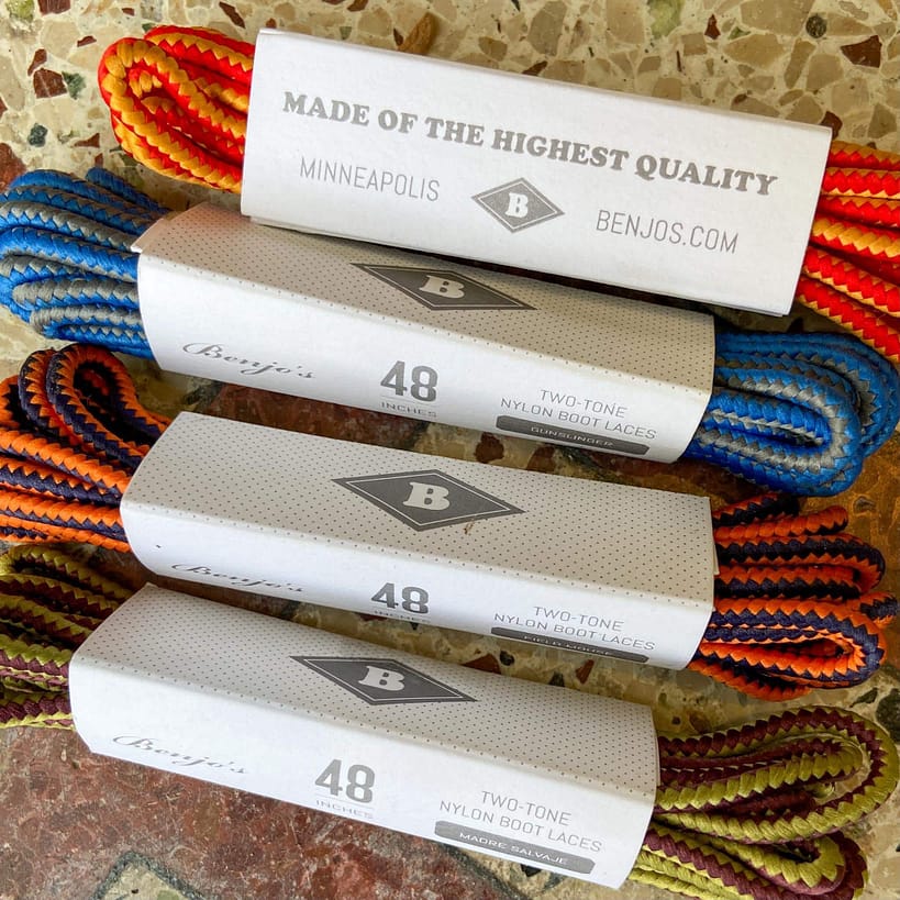 Nylon Boot Laces by Benjo’s are made in the USA with premium two-tone nylon. 48″ work boot laces work well with 6-7 eyelets. Perfect length for Red Wing 875 moc-toes or the Iron Ranger.