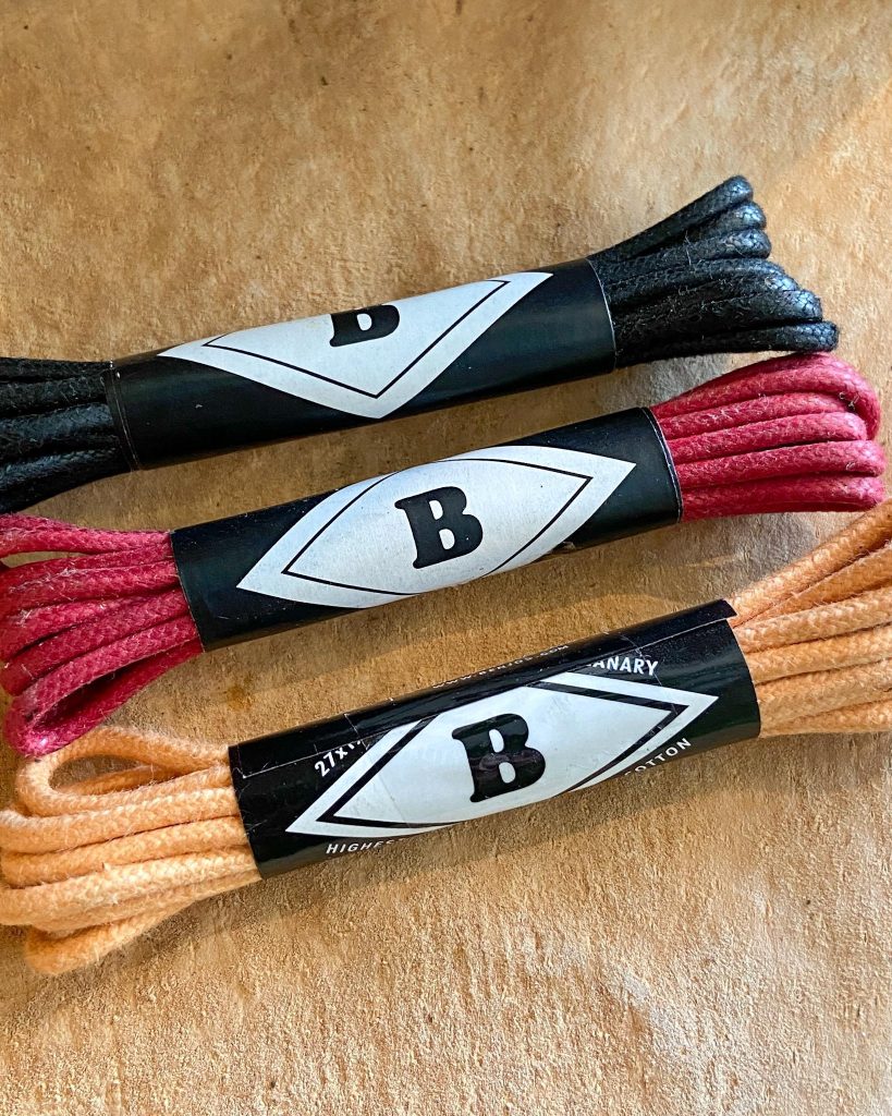 Round Waxed Laces by Benjos’ are made in the USA from premium waxed cotton. 27″ standard dress shoe length for oxfords and wingtips.