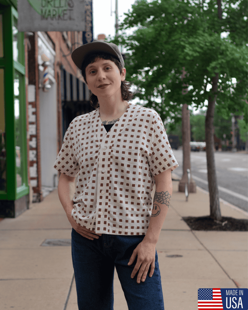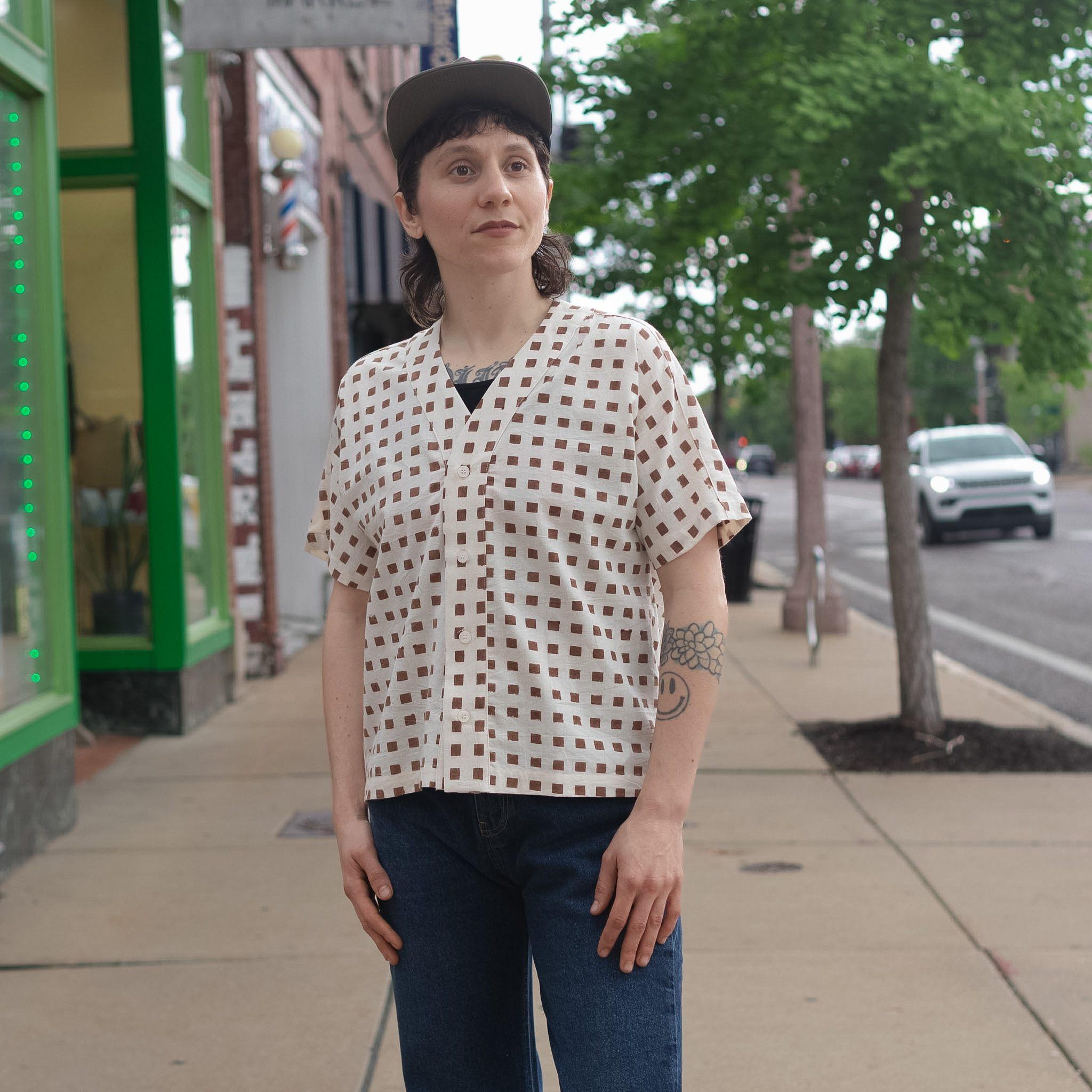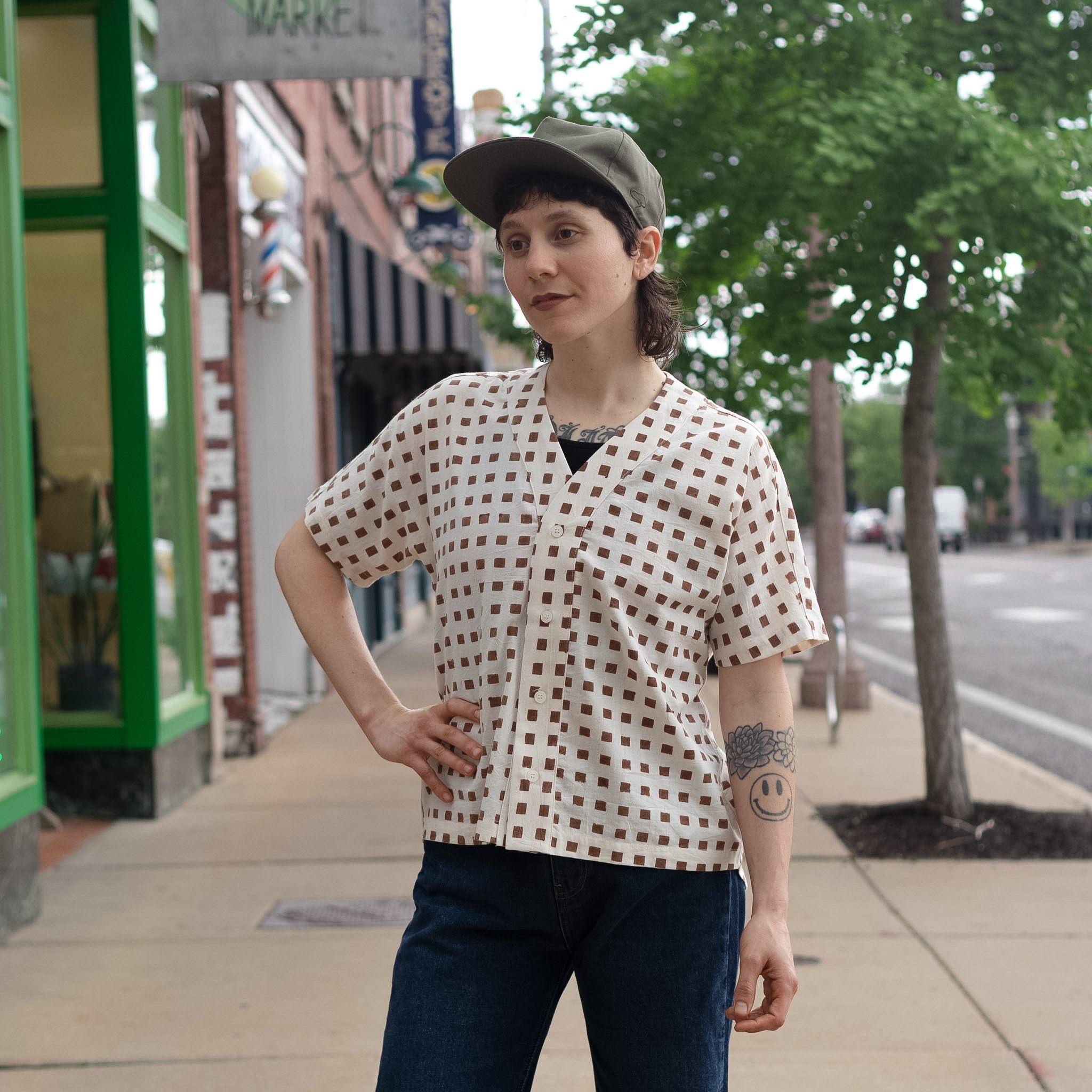 Block Print Baseball Shirt by Seekerblends vintage athletic inspiration with artisanal craftsmanship. Featuring a classic baseball-style silhouette, this shirt stands out with its hand-block printed design—each piece carries subtle variations that make it truly one of a kind