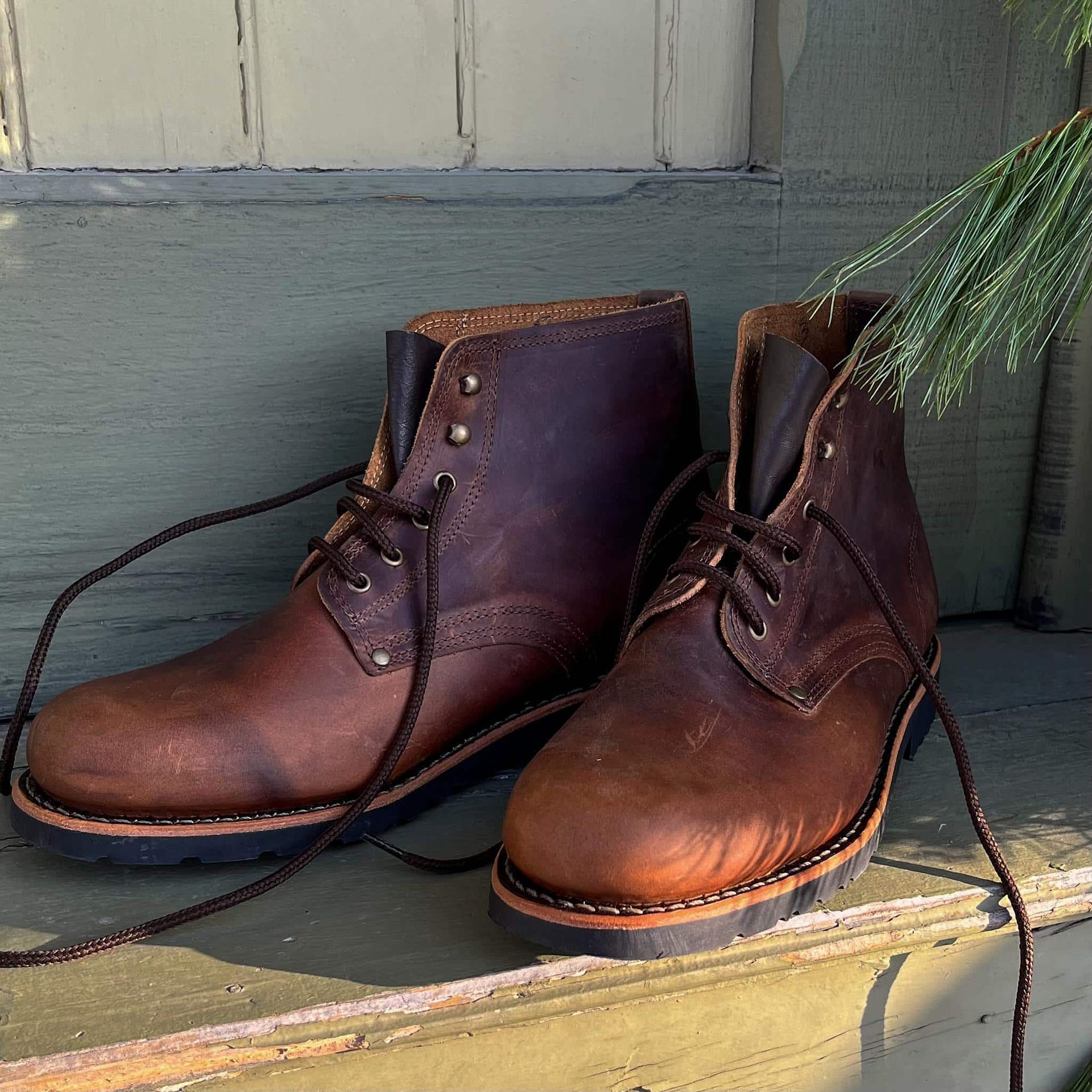 Triglav Leather Boots from By The Mountain are handcrafted in Portugal with a sustainalbly produced natural-vegetable tanned leather. Inspired by Portuguese working-class boots from the 1950’s, these are meant to stand the test of time. This beautiful leather is treated with natural tallow making these boots waterproof (apply tallow or beeswax often to keep them waterproof and the leather in it’s best condition).