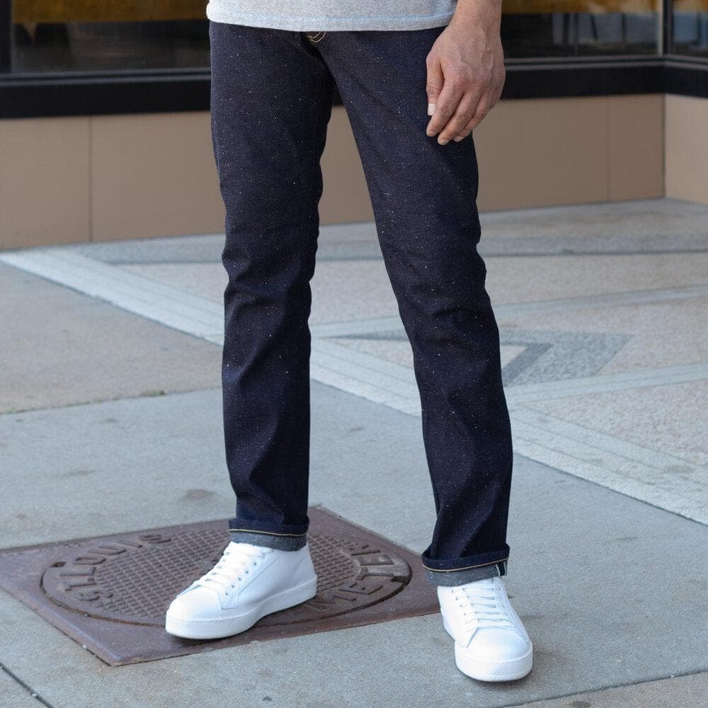 Nep selvedge is a type of high-quality denim fabric characterized by visible “neps,” or small clusters of fibers that protrude from the surface, creating a textured and irregular appearance. The irregular texture of this type of selvedge denim gives it a vintage, rugged look. Nep denim will develop a unique patina and fade over time, emphasizing the neps and adding character to the fabric. The aging process enhances the fabric’s irregularities, making each pair of jeans uniquely yours.