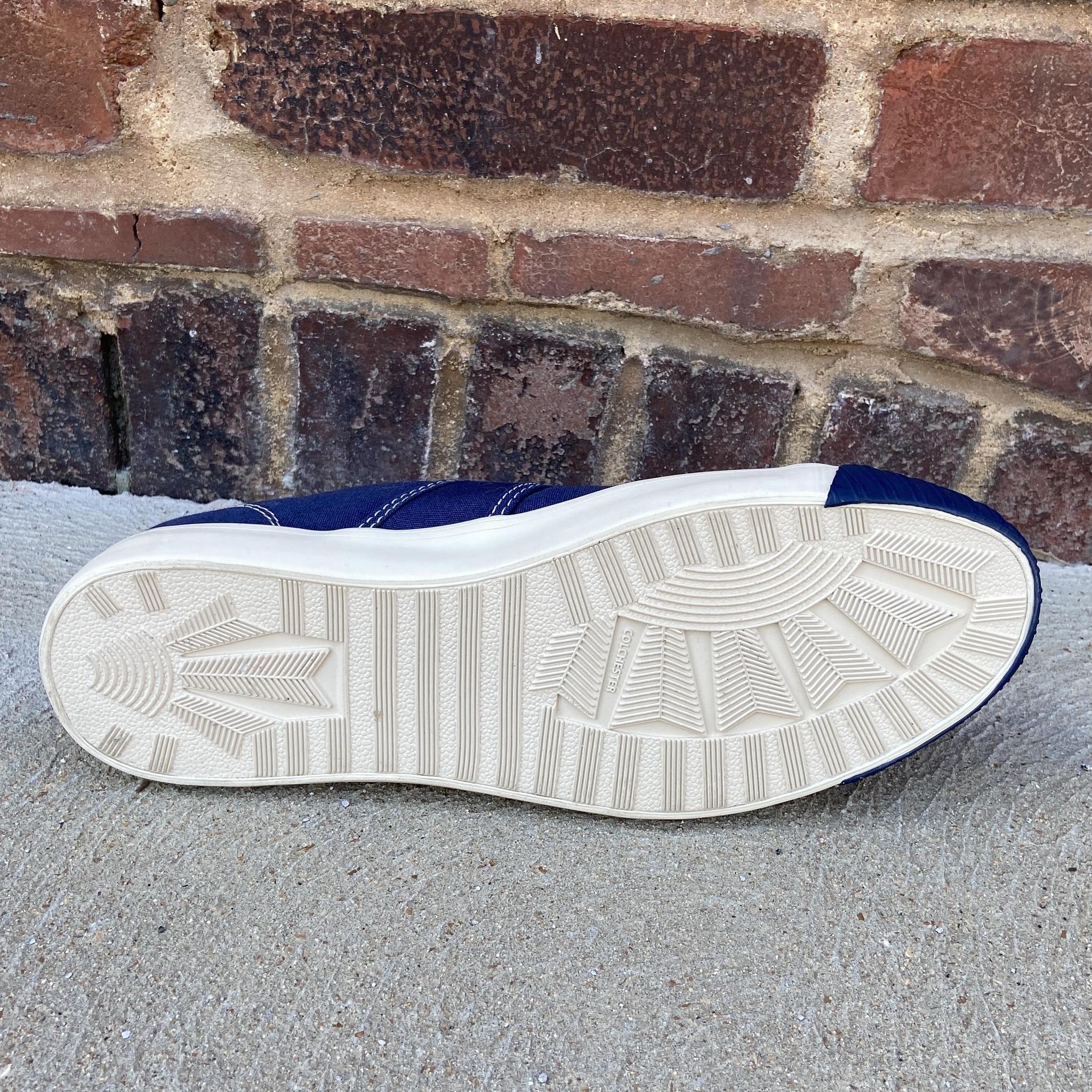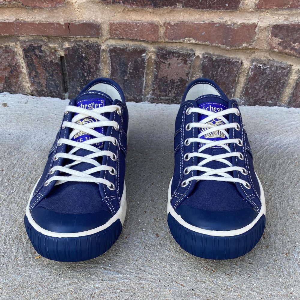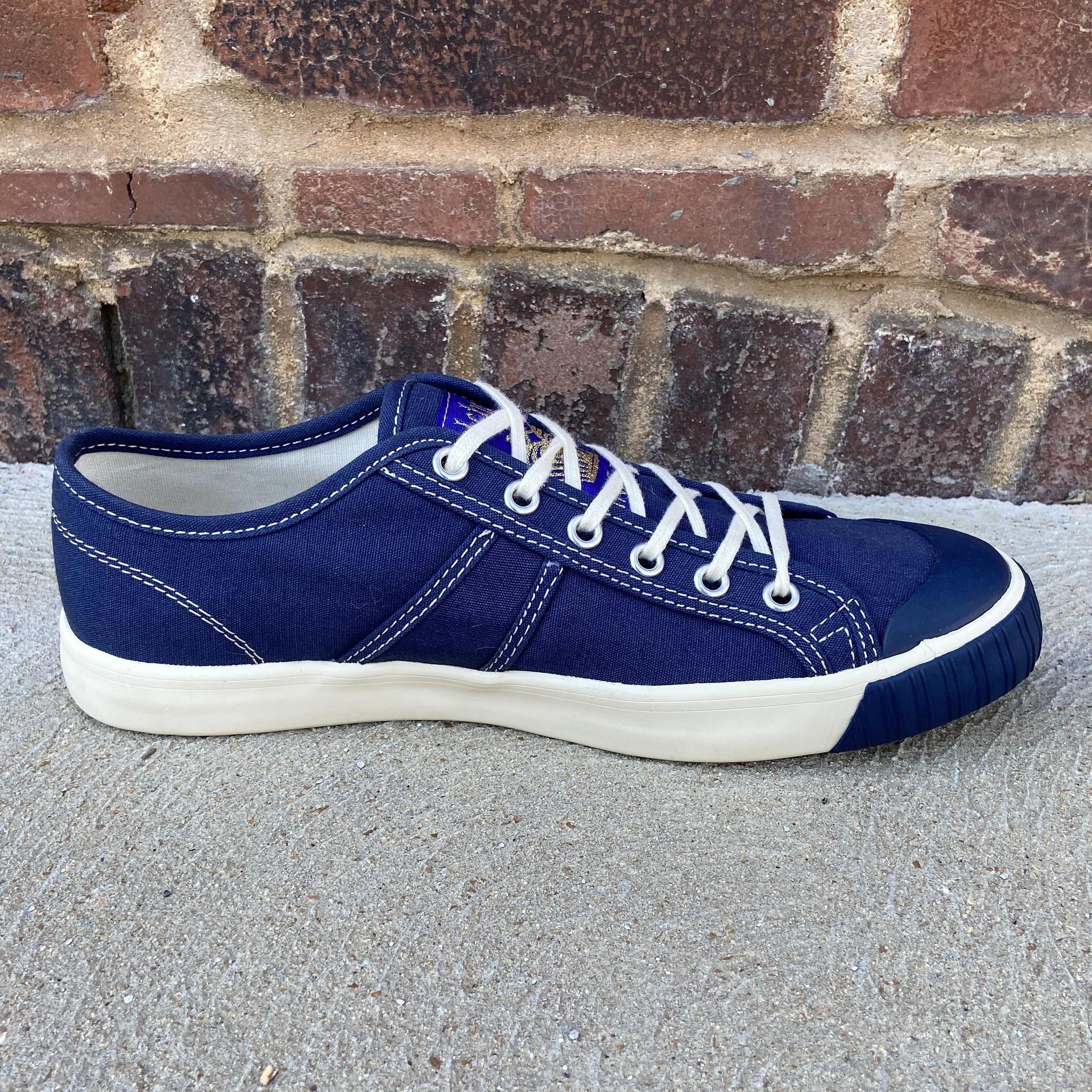 National Treasure Low Navy sneakers are the perfect casual shoe with vintage appeal. This low version is based on Colchester Rubber Co’s original high-top model which was the original basketball shoe invented in 1892. An original high-top was rediscovered in 2004 at an estate sale in Vista, CA.