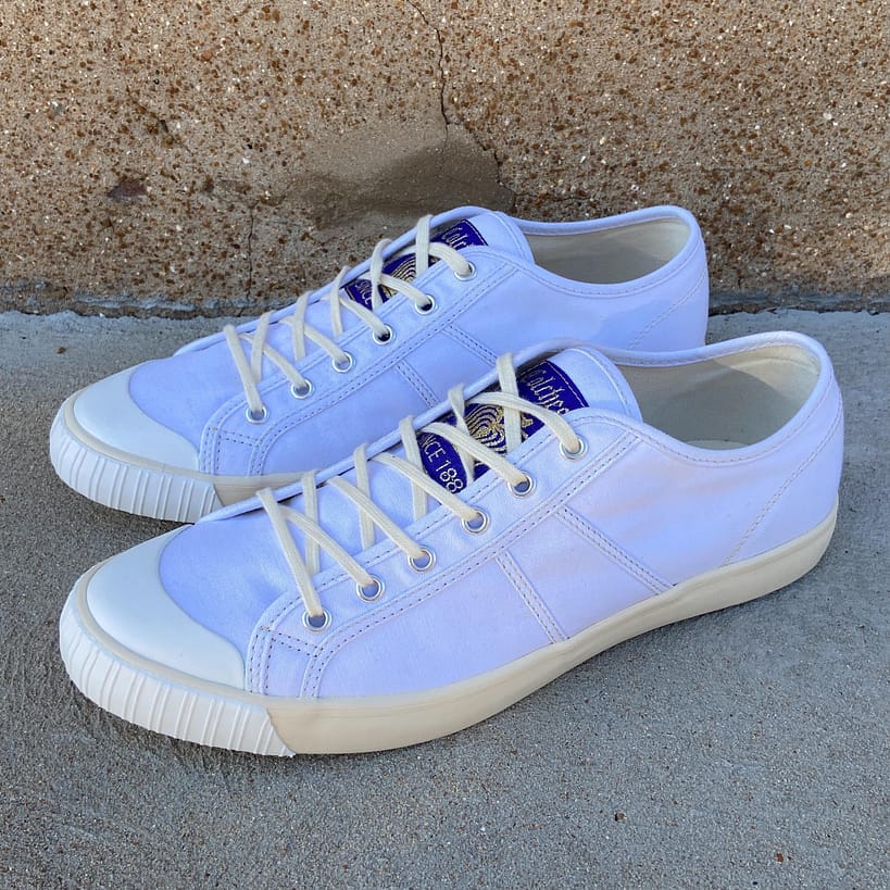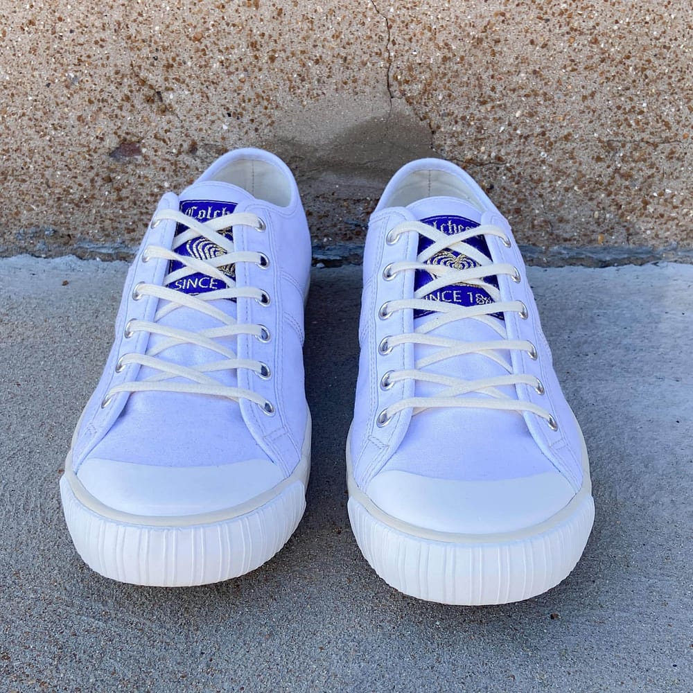 National Treasure Low Deadgrass sneakers are the perfect casual shoe with vintage appeal. This low version is based on Colchester Rubber Co’s original high-top model which was the original basketball shoe invented in 1892. An original high-top was rediscovered in 2004 at an estate sale in Vista, CA.