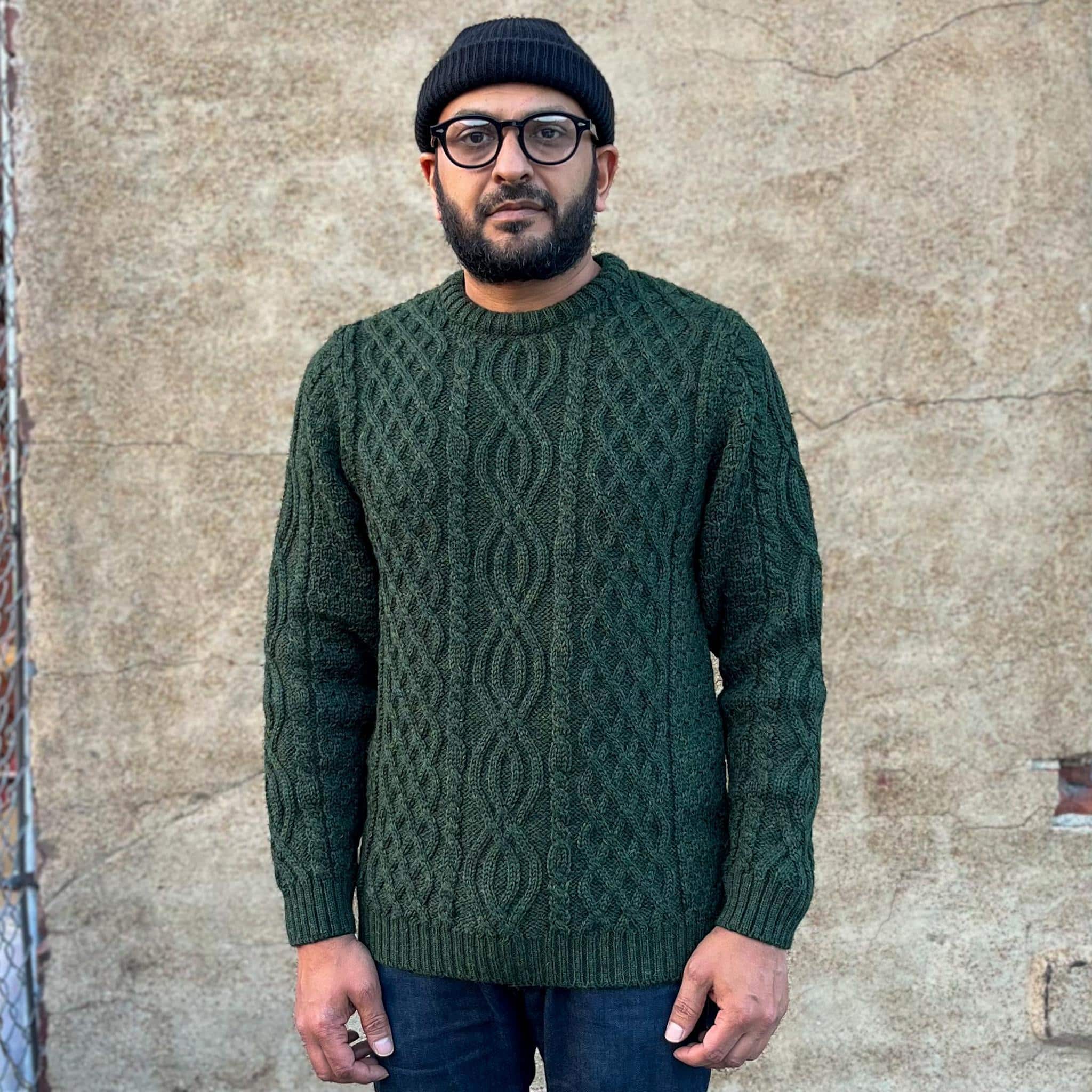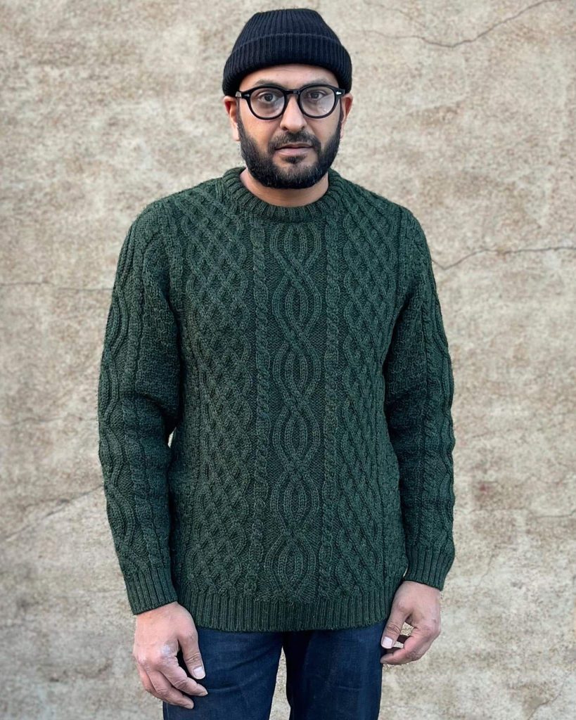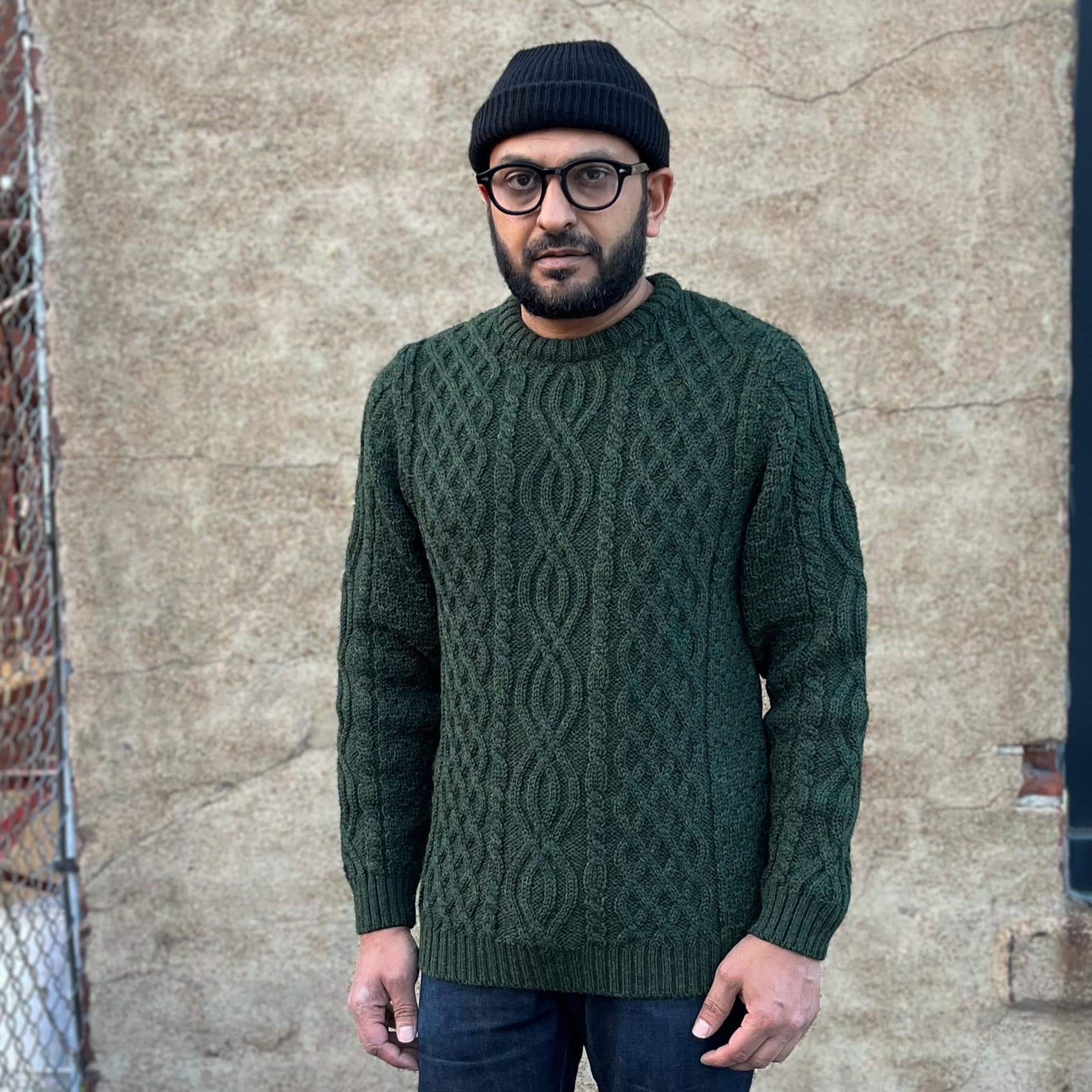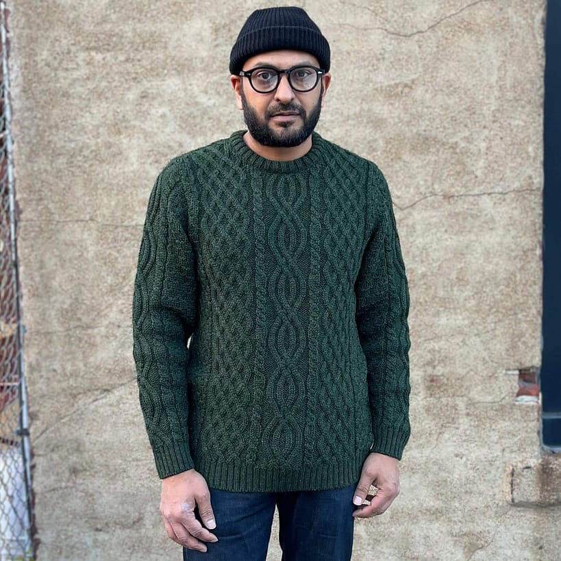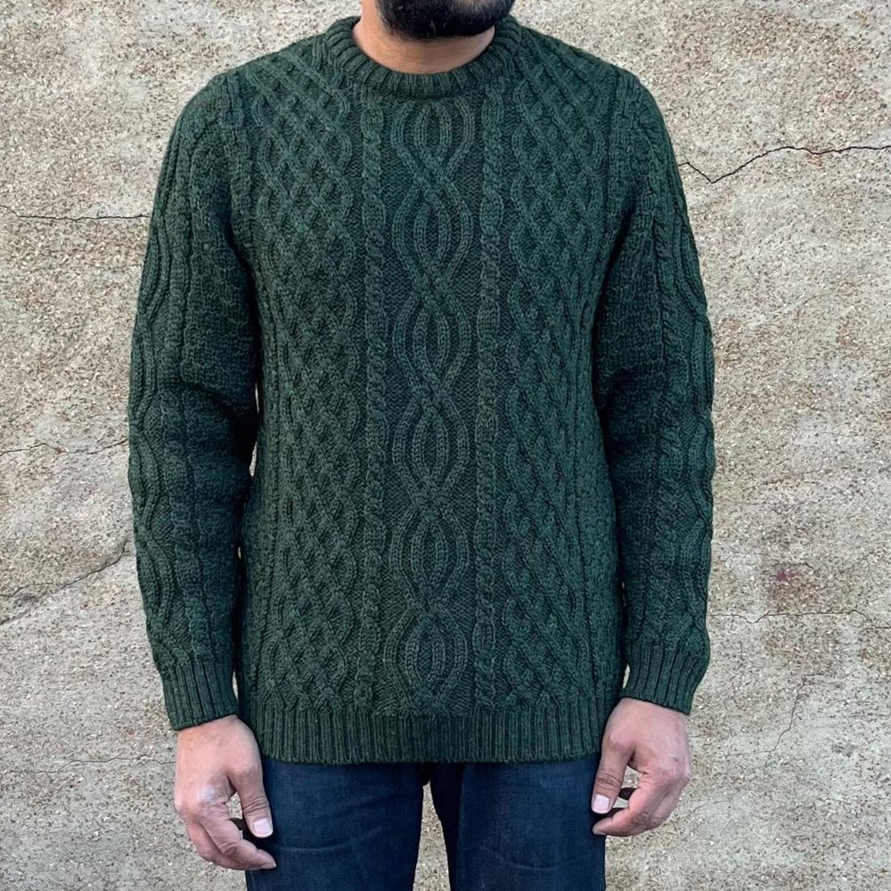 Dolan Aran Sweater by Crimson Serpents Premium Knitwear is handcrafted from hearty 100% British Wool. A classic Aran style that has been given a modern twist by knitting 3 panels across the front. Whether you’re layering under a coat or throwing over a shirt, the Dolan will easily take you through the colder months.