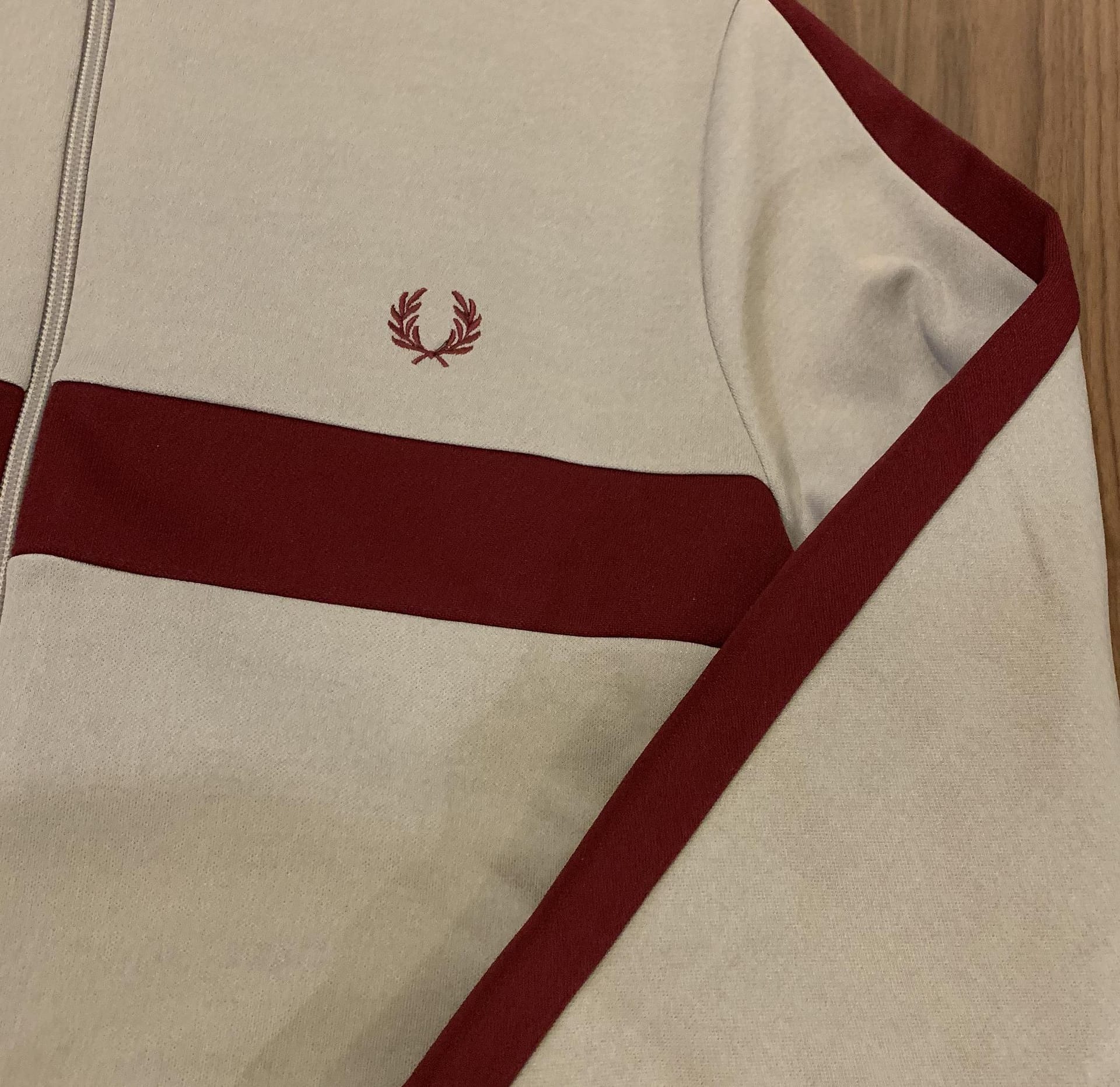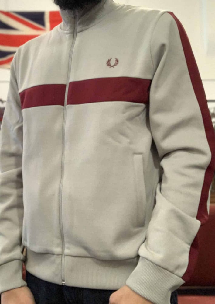 Contrast Panel Track Jacket by Fred Perry is a throwback to their most iconic sportswear styles, from the ‘70s. Contrasting colors and man-made fibers were introduced to team kits and it was these styles that encouraged the evolution of sportswear as streetwear. Made from a brushed tricot fabric that replicates the original, the J540 adopts oxblood tonal panels.