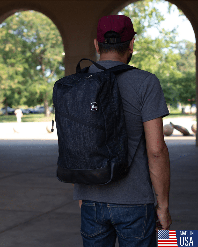 Discover the stylish and eco-friendly Fremont Recycled Denim Backpack by Alchemy Goods, the perfect backpack for your adventures and daily use. This durable backpack is handcrafted in the USA using upcycled bicycle inner tubes and repurposed denim, making it a durable, eco-conscious choice for daily commuting, school, or weekend adventures.