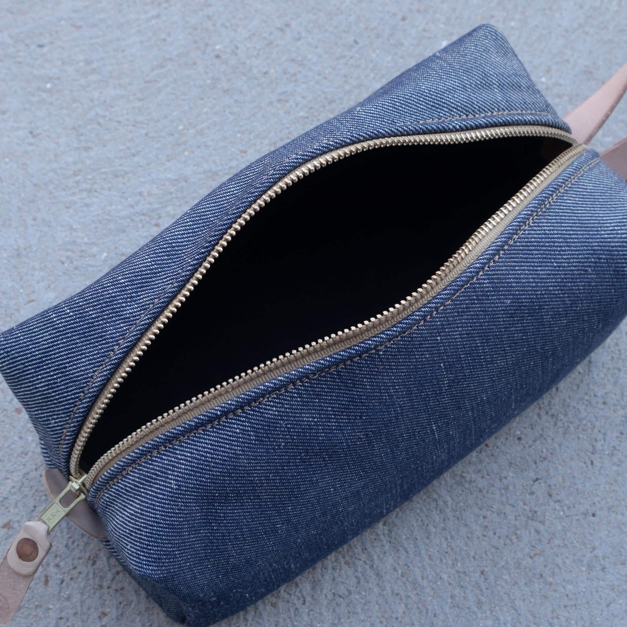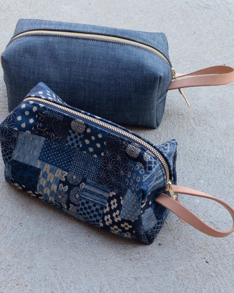 These beautiful toiletry bags feature taped seams, a water-resistant cotton canvas lining, and durable natural veg-tanned leather handles and pull tabs. Available in Japanese woven, sturdy indigo denim and an incredible patchwork print fabric.