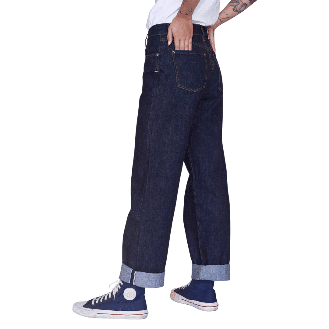 Patty Boy Boyfriend Jeans by Girls of Dust are crafted from a surprisingly soft 12 oz. Japanese selvedge denim. The fit is loose tapered with a high-rise, classic 5-pocket styling, and a lot of attitude. A redline selvedge ID finishes off the vintage look.