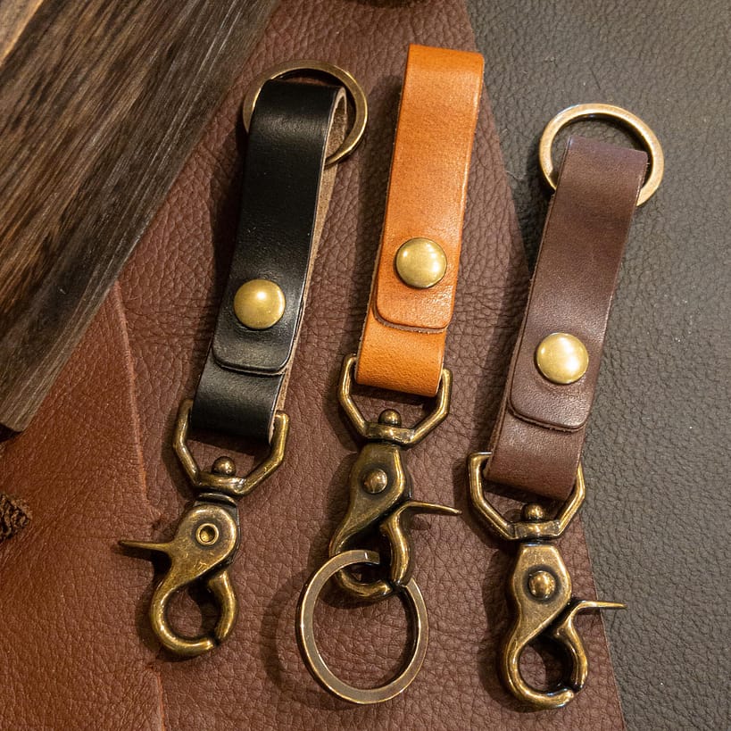 Horween Belt Loop Lanyard keeps all of your keys organized in one handsomely rugged package. Made from beautiful and durable Horween leather, you’ll get years of reliable use with these. Outfitted with a solid brass heavy-duty swivel snap and solid iron key ring.