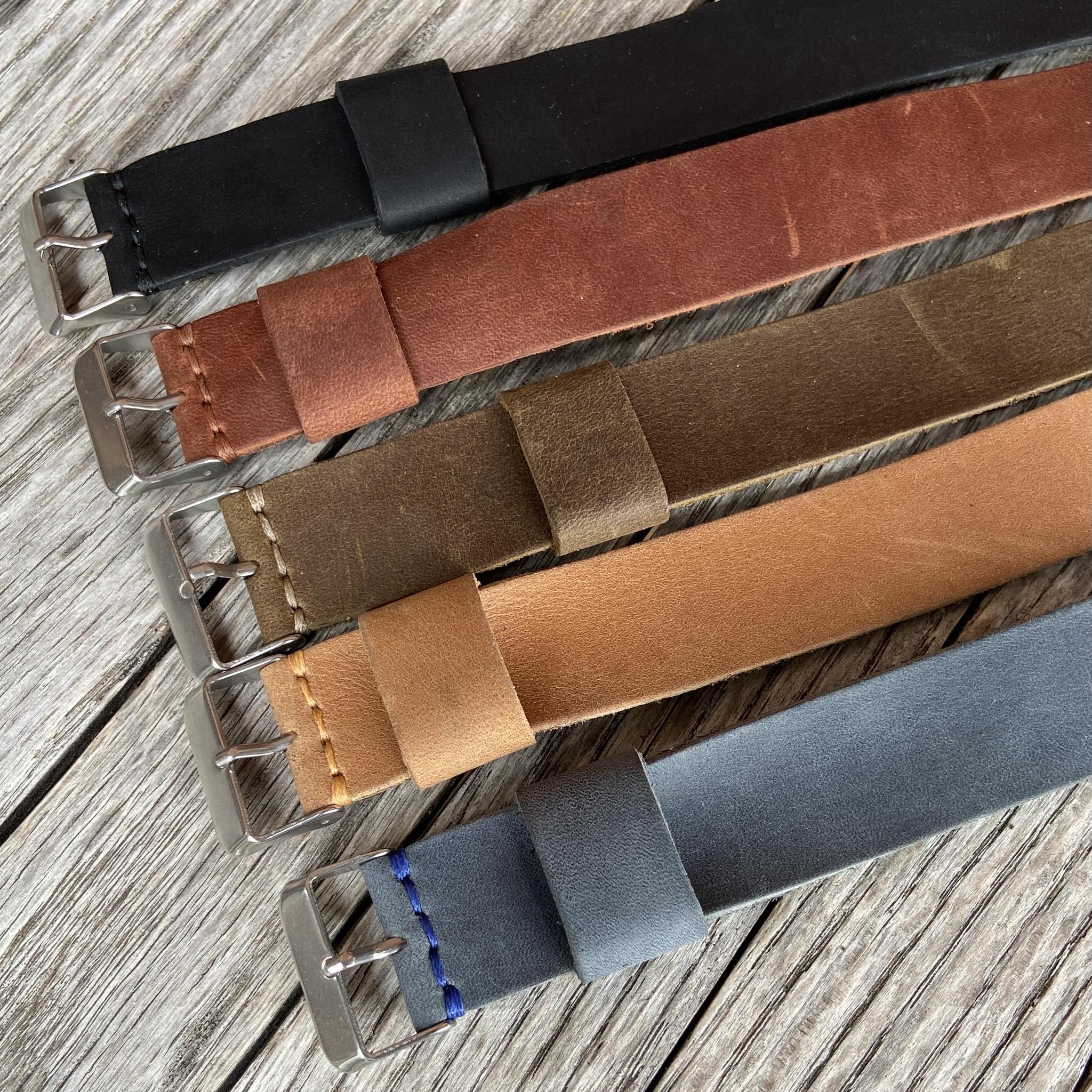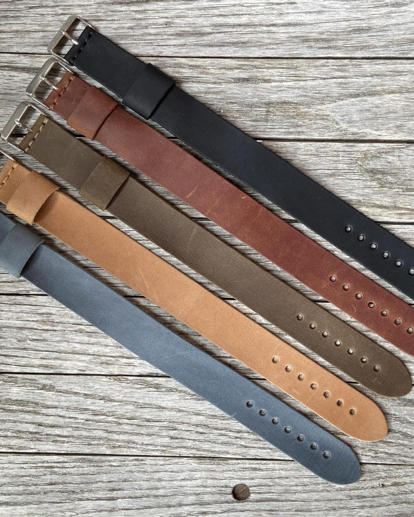 Leather NATO Watch Straps are handmade in our workshop using the finest grade of leather. NATO or G10 watch bands are a fun, functional, and quickly interchangeable way to show off your watch. Made from a solid piece of “pull-up” leather know to have a supple waxy feel.