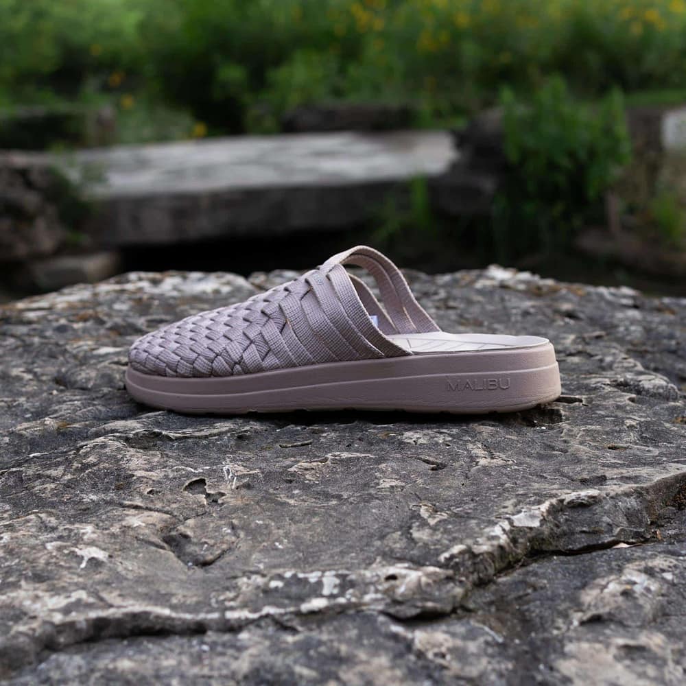 Nylon Colony Classic Sand by Malibu Sandals is a basket-weave mule design feauturing a unique hand-woven strapping pattern. The 3-piece outsole consists of a soft anatomically EVA footbed, a firm EVA midsole, and a slightly lugged traction rubber outsole.
