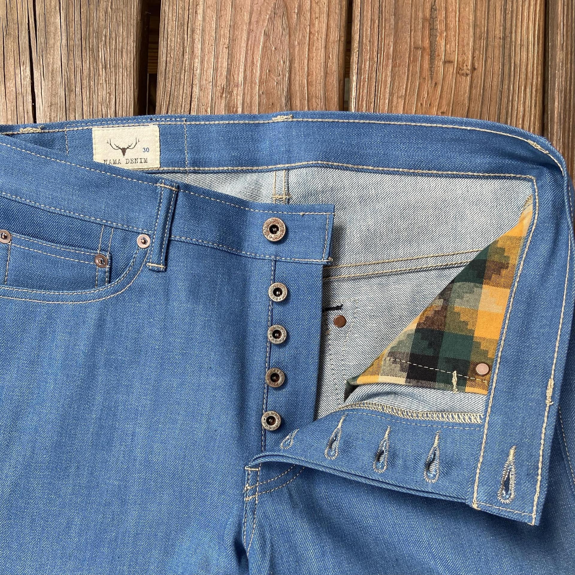 - Handcrafted in-house by Nama Denim in Bangkok, Thailand