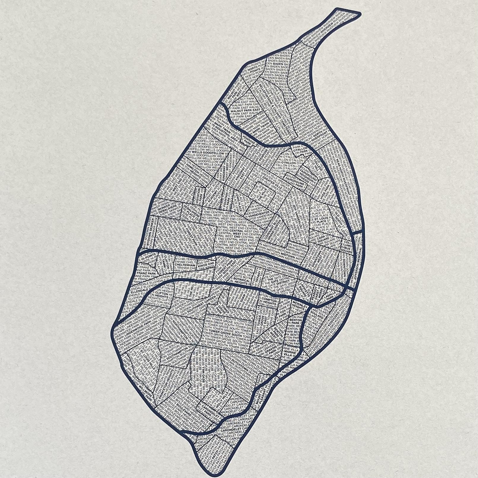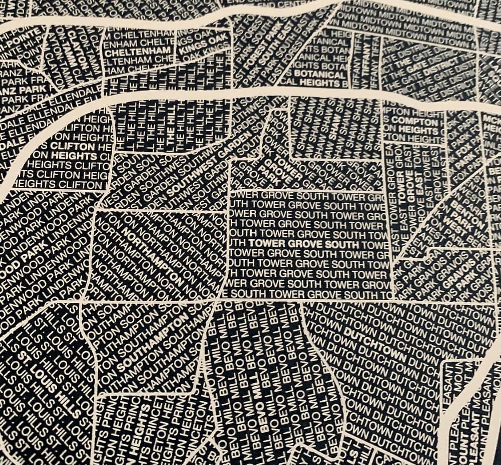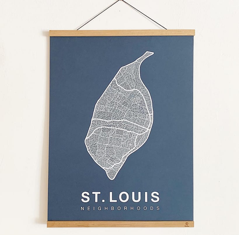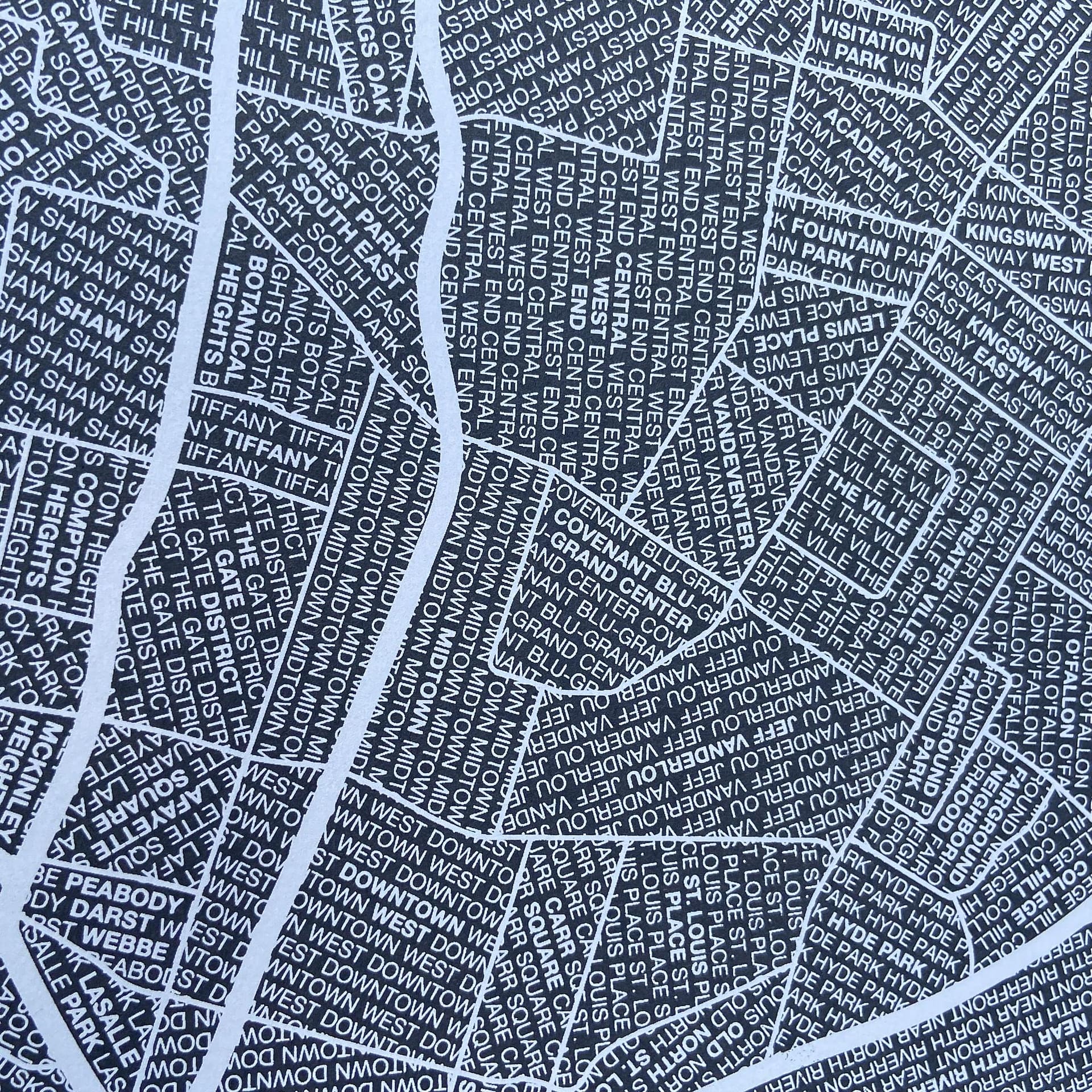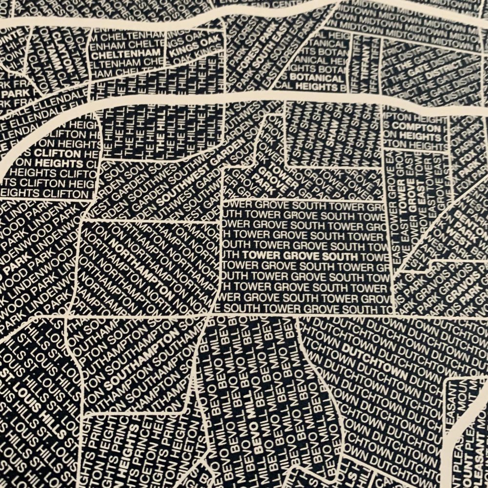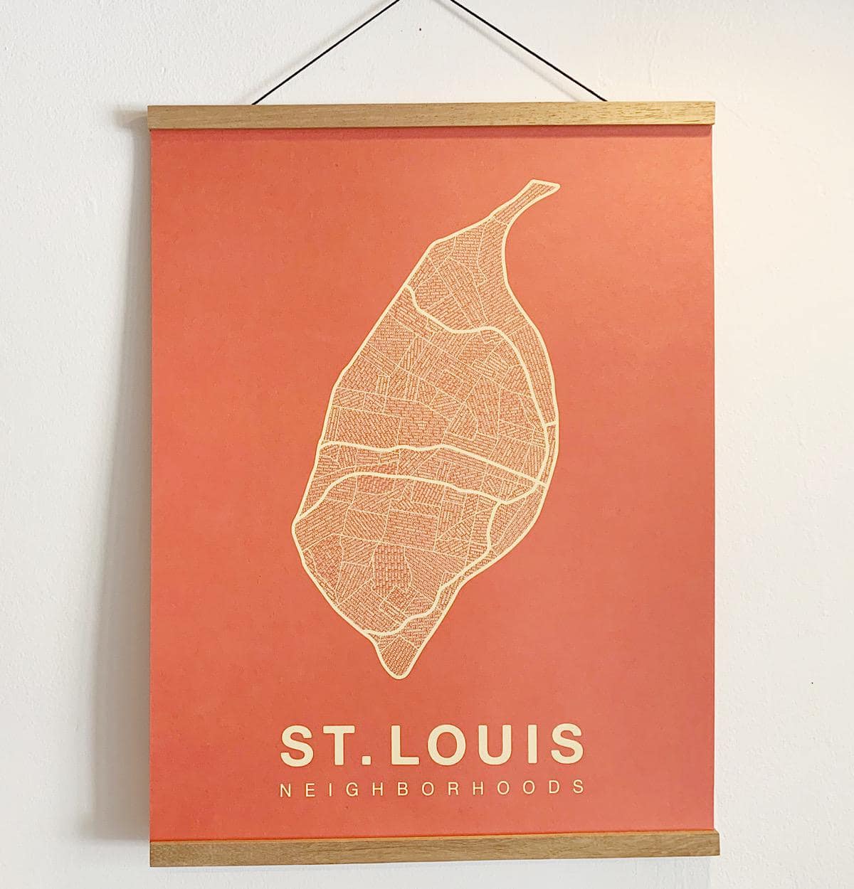 St. Louis Neighborhood Map is examined by local experts and highlights every neighborhood within the city limits in a minimalist style. The 18″ wide by 24″ height is perfect for framing. Maps are screen-printed by hand on heavyweight paper with a matte on matte texture.