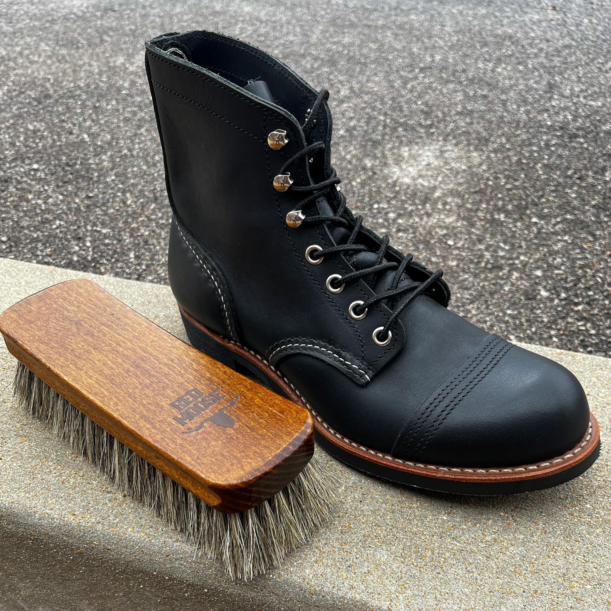 It also helps raise the fibers to create the best surface for shining. Use to shine your leather shoes after applying Red Moose cream polish. Apply a thin even layer of polish and let dry. Use the brush to buff the entire shoe with quick side to side movements for a bright shine.