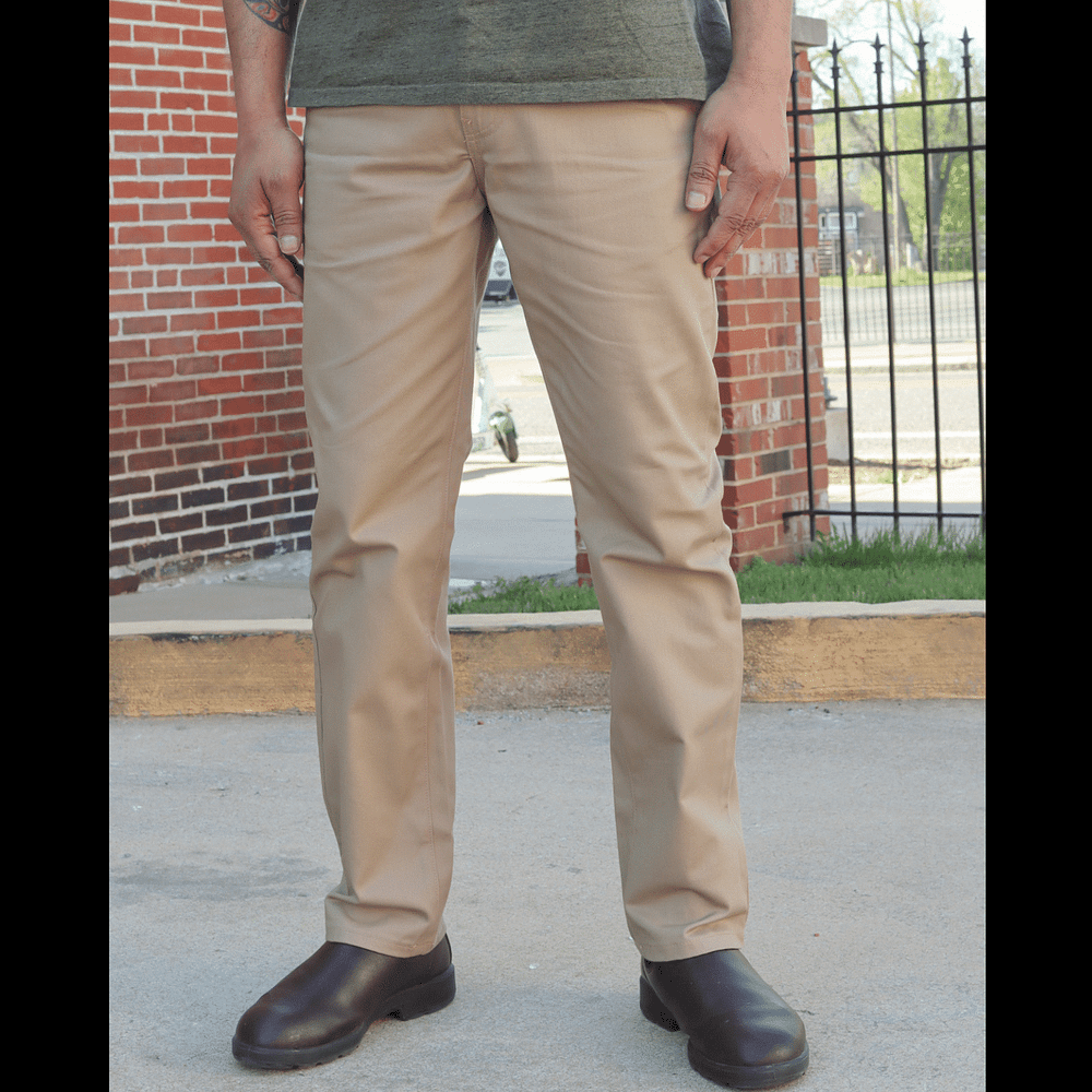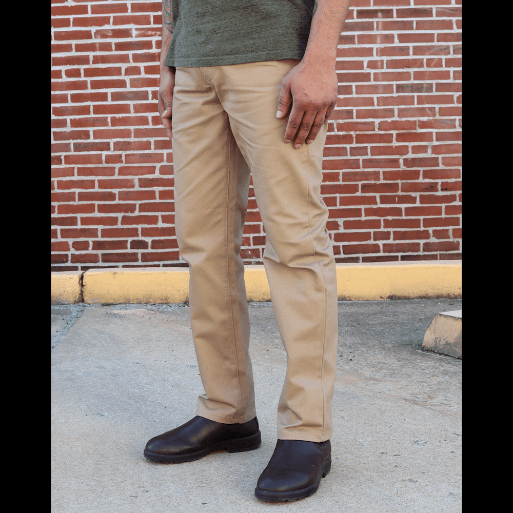 Classic Khaki Workwear Chino from Rustic Dime are made from a 100% cotton heavyweight twill for durability and comfort. A classic relaxed fit silhouette with slant pockets on the front and welt pockets on the rear. The khaki hue will be a great addition to your spring wardrobe.