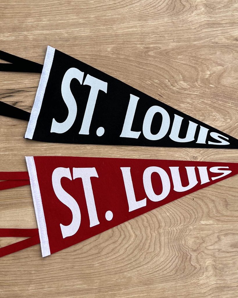 STL Felt Pennant by Sandlot is the perfect decor for all St. Louisans. Made in Kansas City, MO from 100% wool felt, these will look great in your office, den, or game room. Available in Red/White and Black/White.