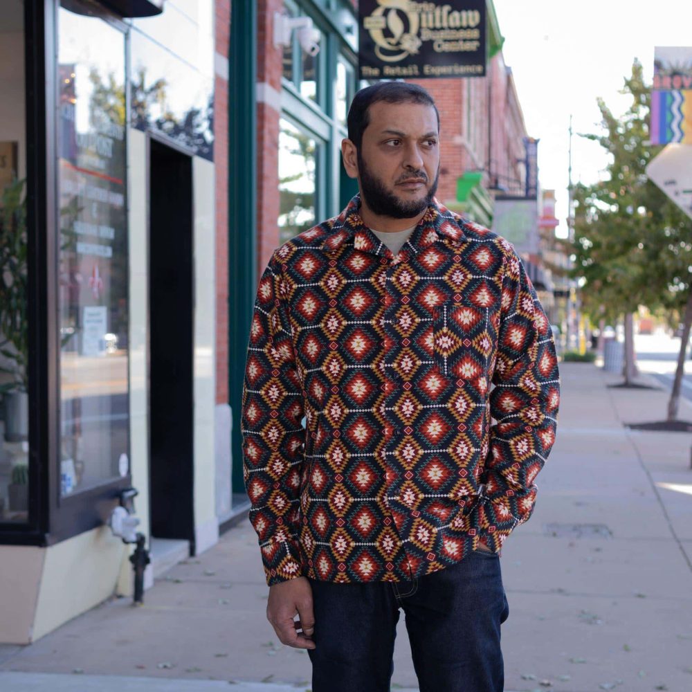 The bold woven pattern draws on classic Southwestern design, offering a unique alternative to standard plaids. Heavyweight chain-stitching, a seamless French placket, a single chest pocket, and a pleated back yolk add practical details, while the soft interior finish ensures all-day comfort.