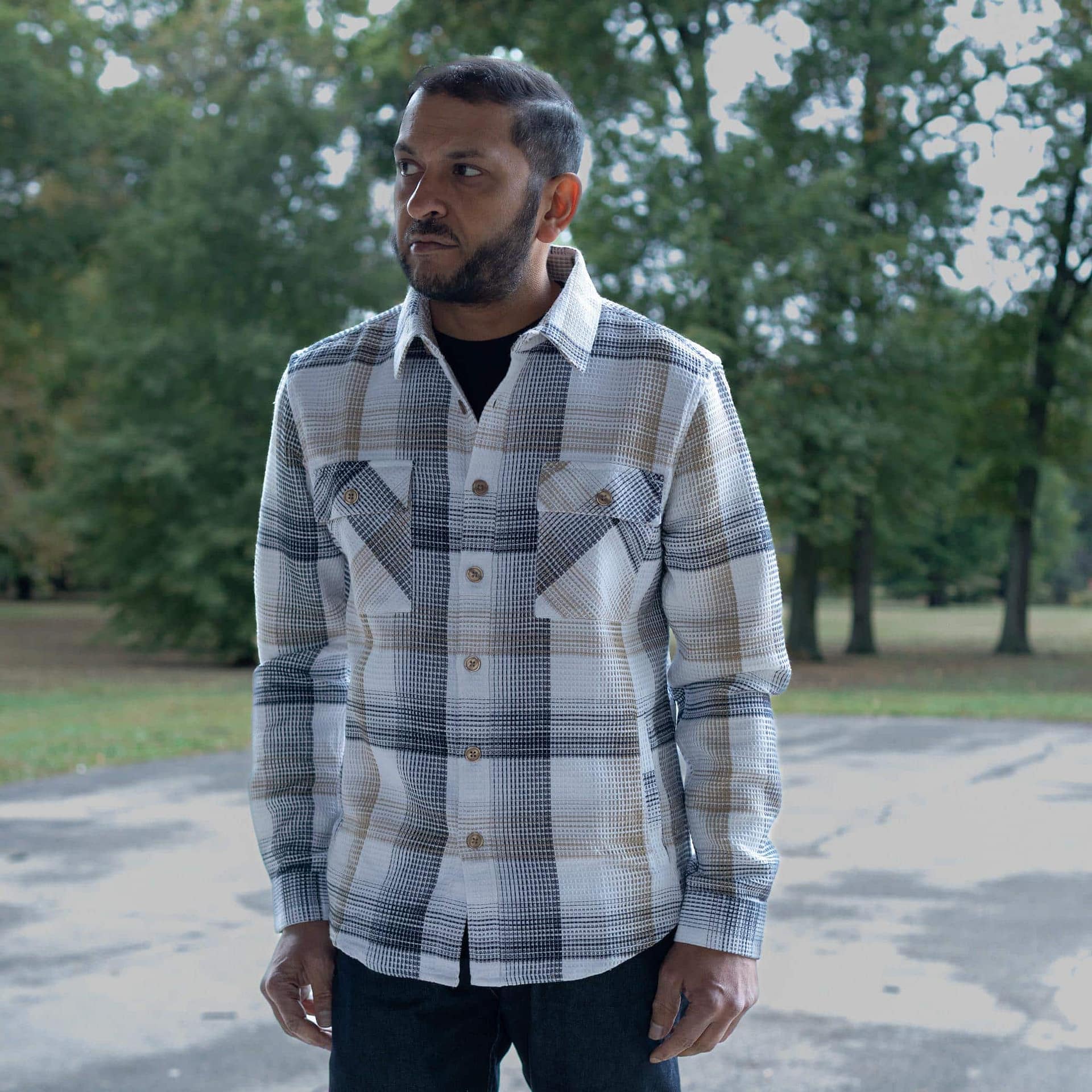 Transition through the seasons in style with the Stonebridge Shirt Jacket by Vustra — a versatile piece that blends the structure of a jacket with the comfort of a shirt. Crafted from durable organic cotton/poly flannel with a waffle weave, this midweight shacket delivers the perfect balance of warmth, breathability, and timeless appeal.