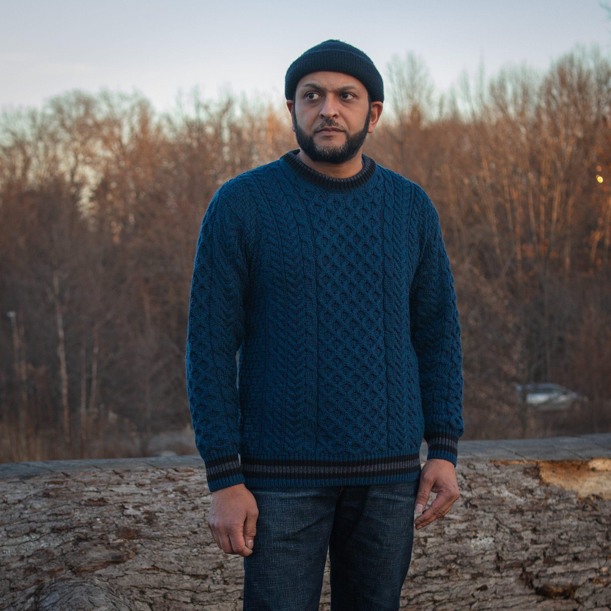 Striped Aran Teal Sweater – Aran Woollen Mills