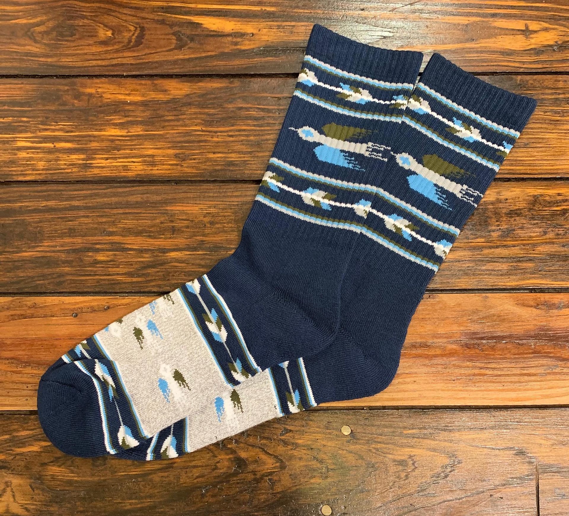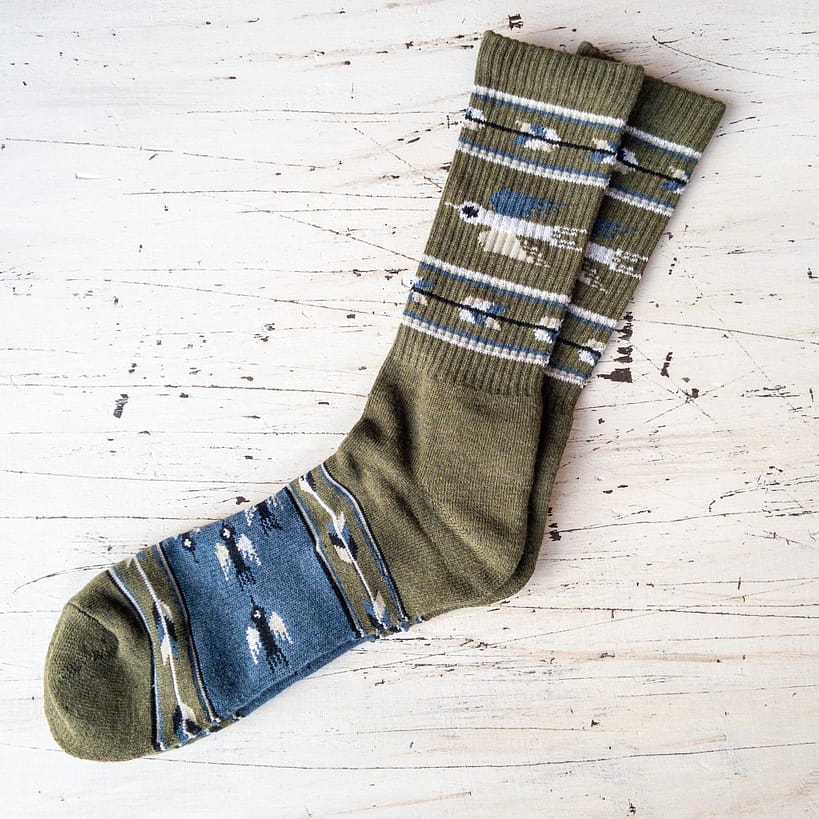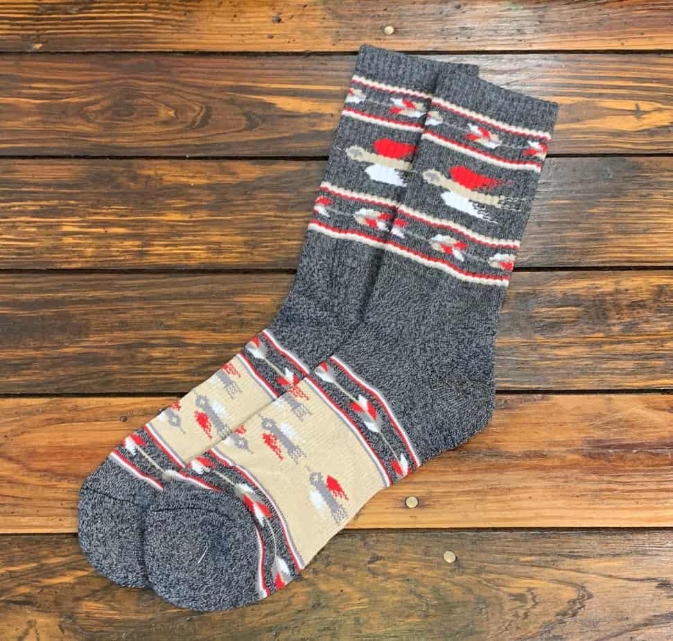 T-Bird Socks by The Ampal Creative are woven with a Southwest Rug inspired motif. A Bamboo and Cotton blend with a cashmere feel. Repels odors and is much more breathable than regular cotton socks.