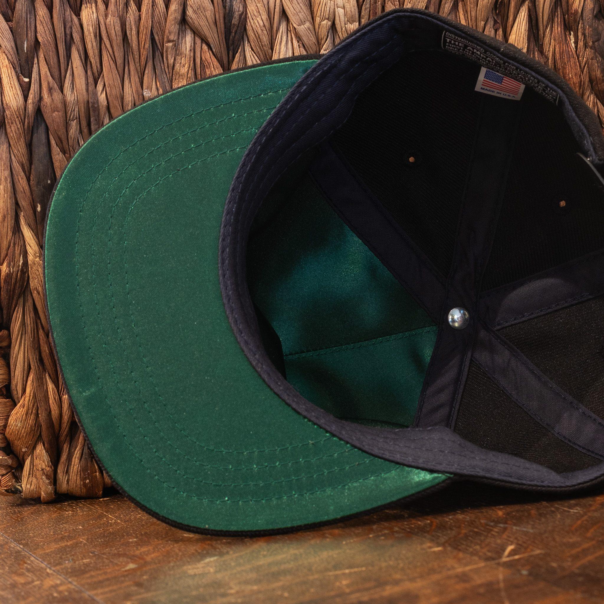 - Underbrim/lining: green satin