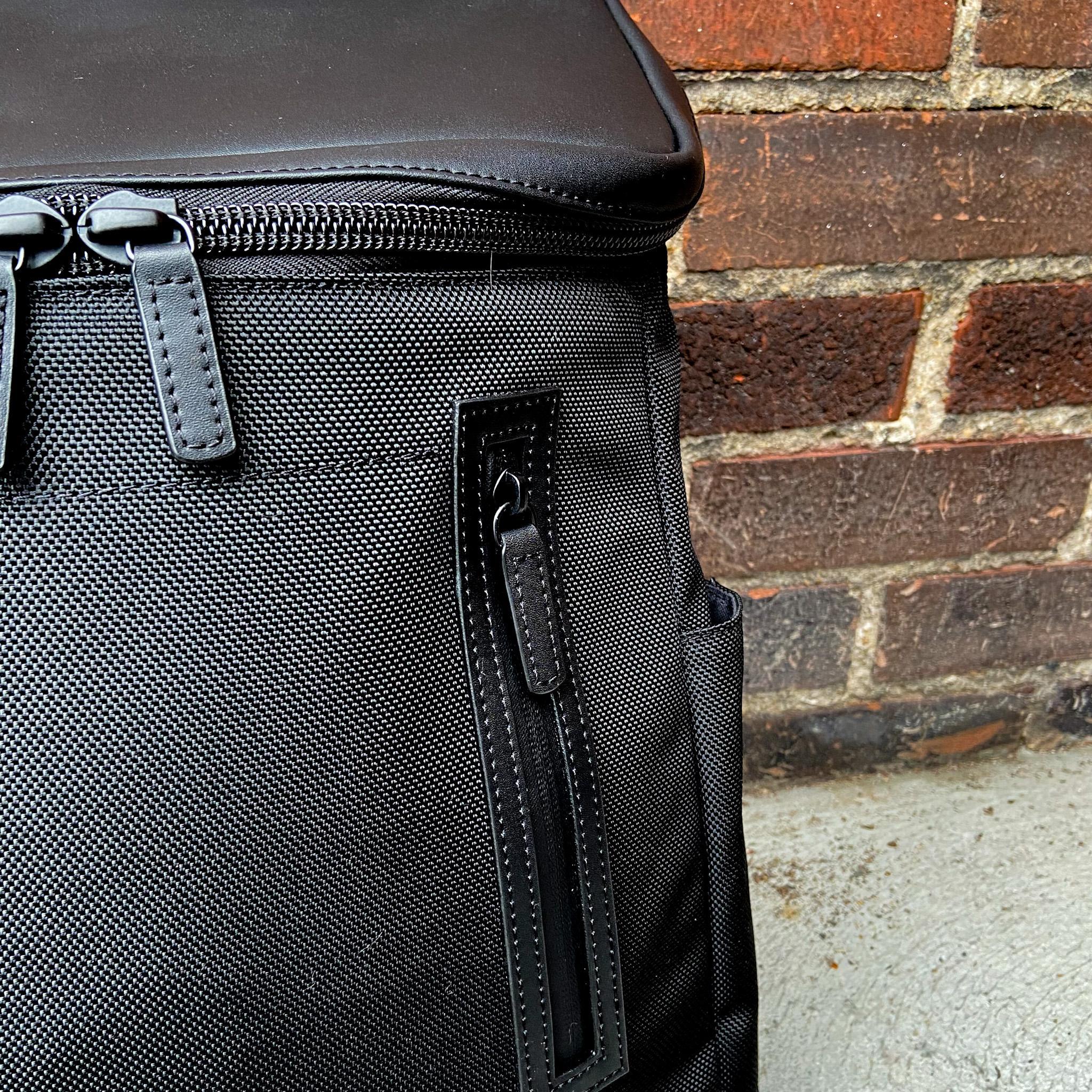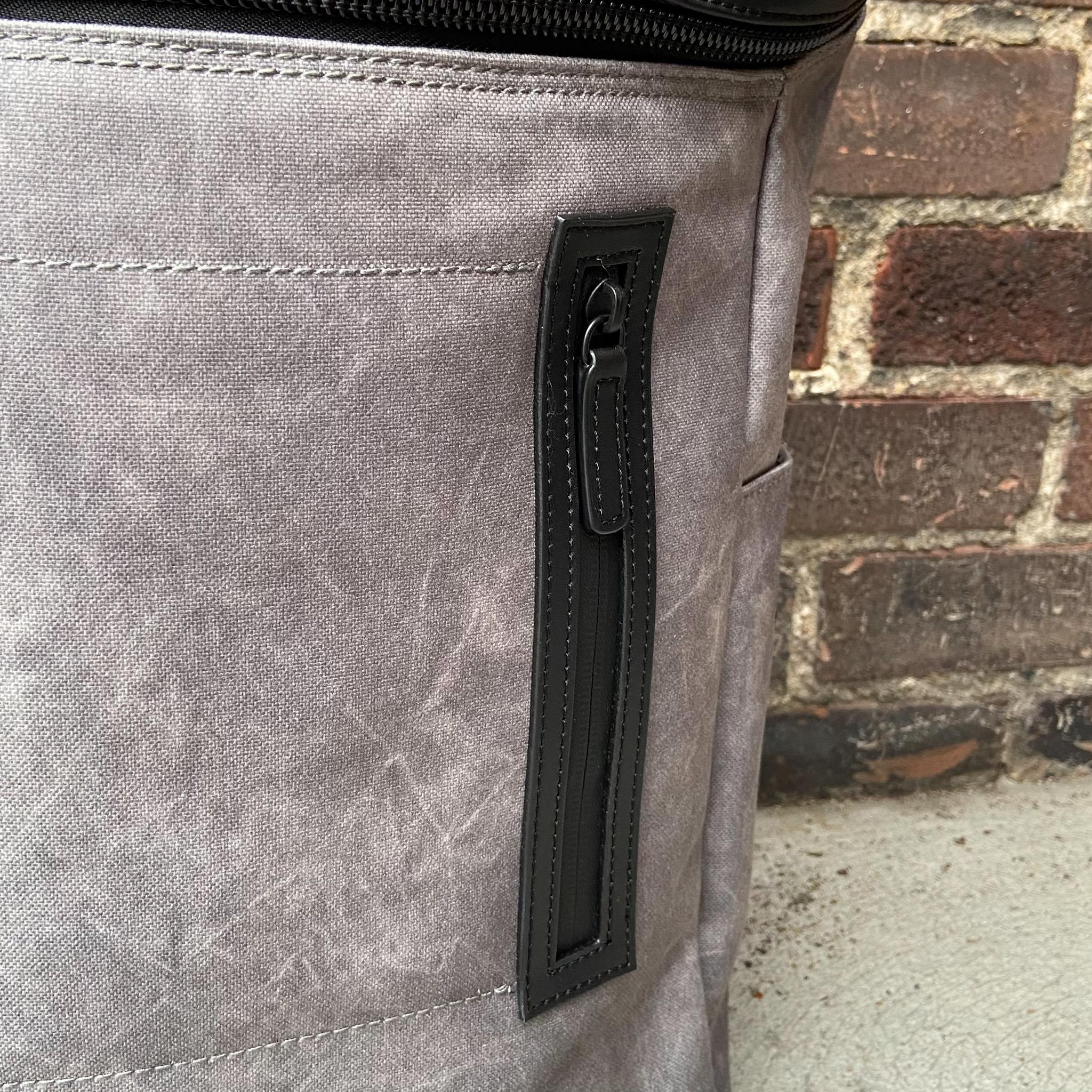 Featuring a unique leather-trim zip pocket to keep valuables safe and easily accessible. Zippered side pockets allow for water bottle storage. The rich black leather trim throughout makes the Amsterdam stand out from the crowd.
