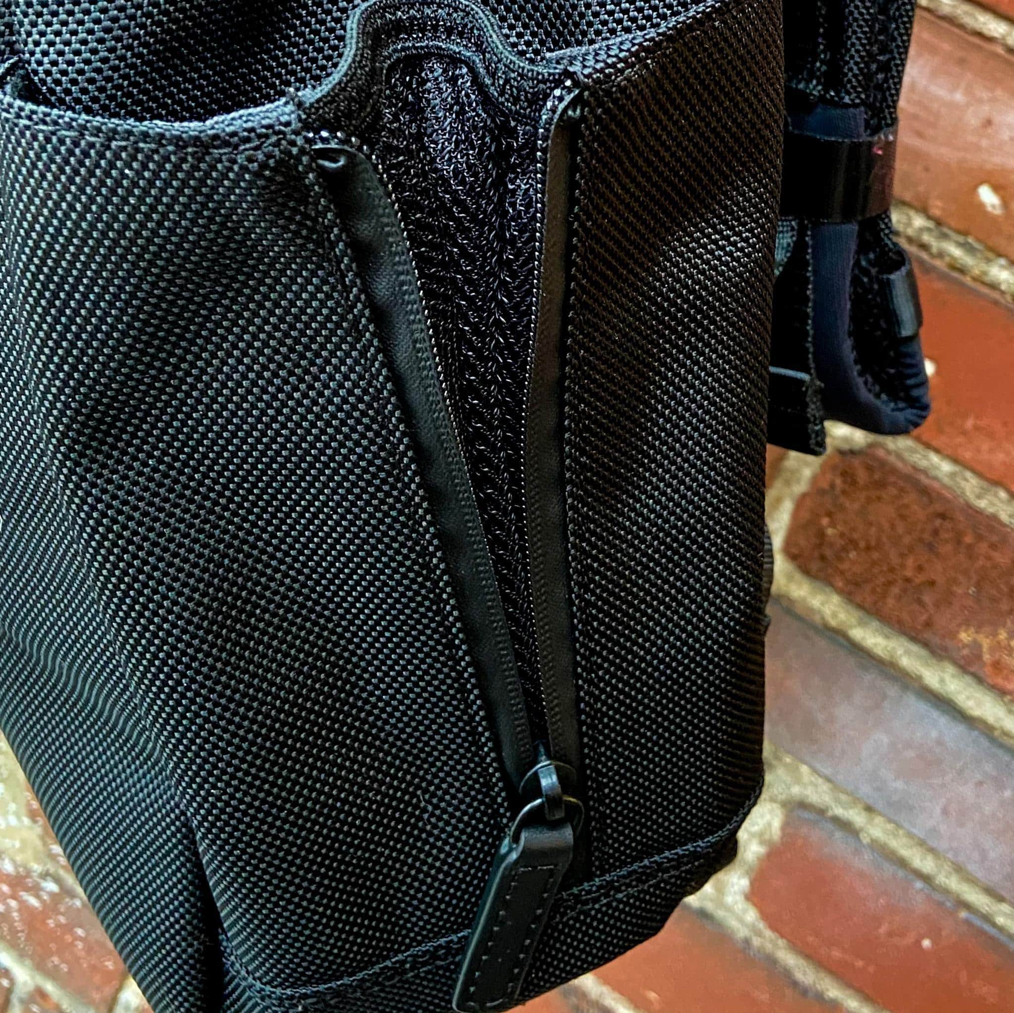 – Zippered side pockets